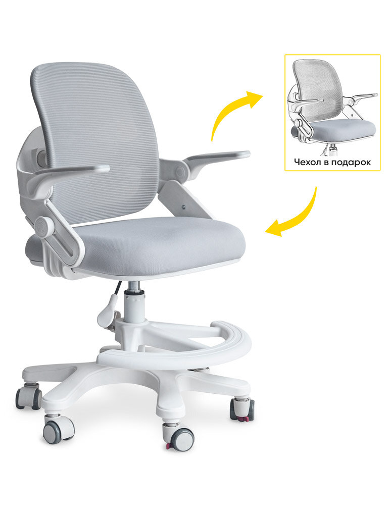 Эргономичное кресло имеет откидные подлокотники, которые обеспечивают дополнительный комфорт по время учебы дома.