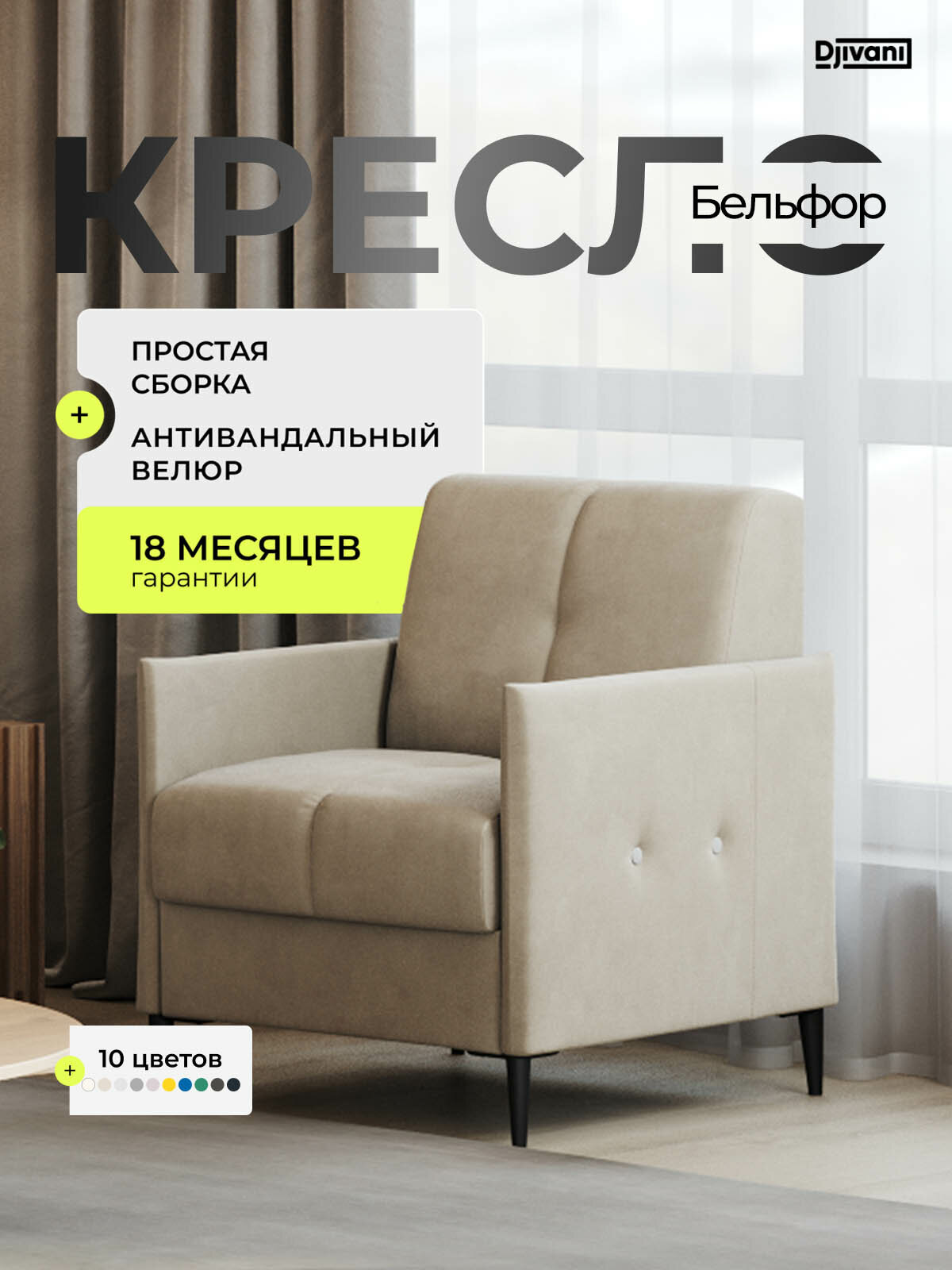 Купить Кресло Djivani Бельфор , с подлокотниками, велюр, бежевый, ножки — чёрные с доставкой по всей России. Кресло Djivani Бельфор , с подлокотниками, велюр, бежевый, ножки — чёрные: сравнение цен, характеристики, фото, актуальное наличие и цены.