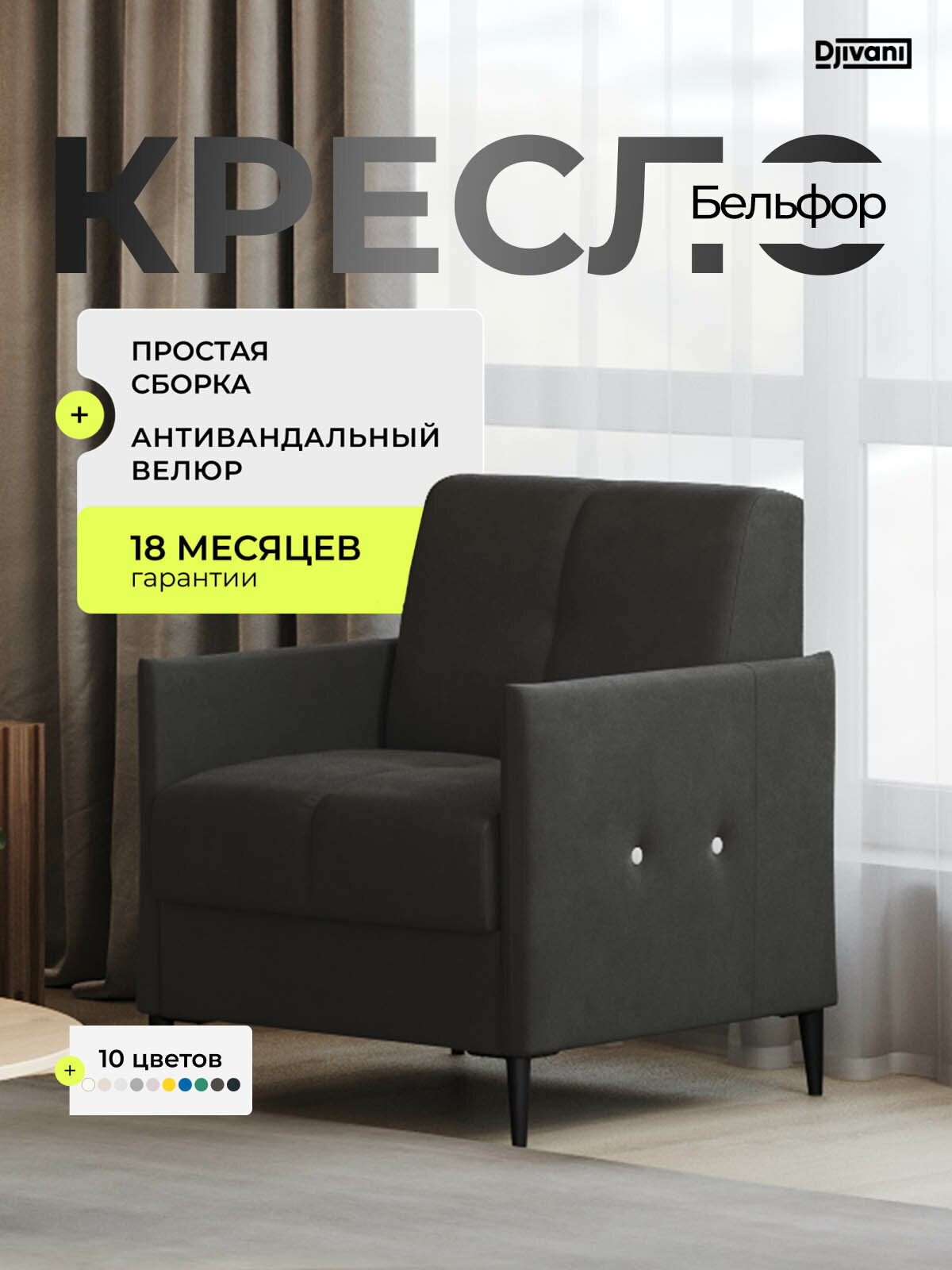 Кресло Djivani Бельфор , с подлокотниками, велюр, коричневый, ножки — чёрные: сравнение цен, характеристики, фото, актуальное наличие и цены.