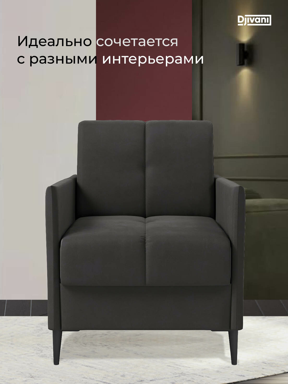 Купить Кресло Djivani Бельфор , с подлокотниками, велюр, коричневый, ножки — чёрные с доставкой по всей России.