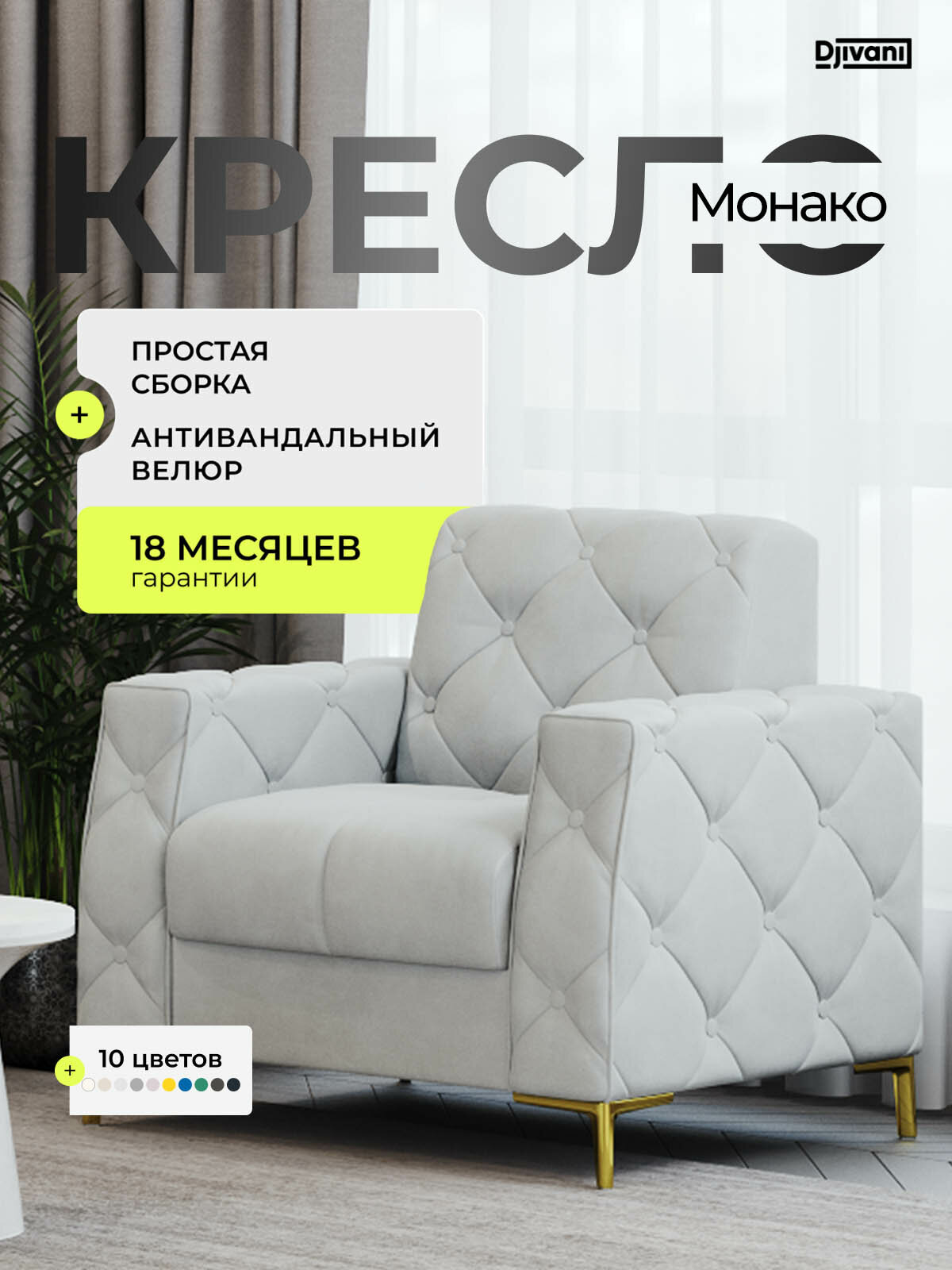 Кресло Djivani Монако , с подлокотниками, велюр, светло-бежевый, ножки — золото: сравнение цен, характеристики, фото, актуальное наличие и цены.