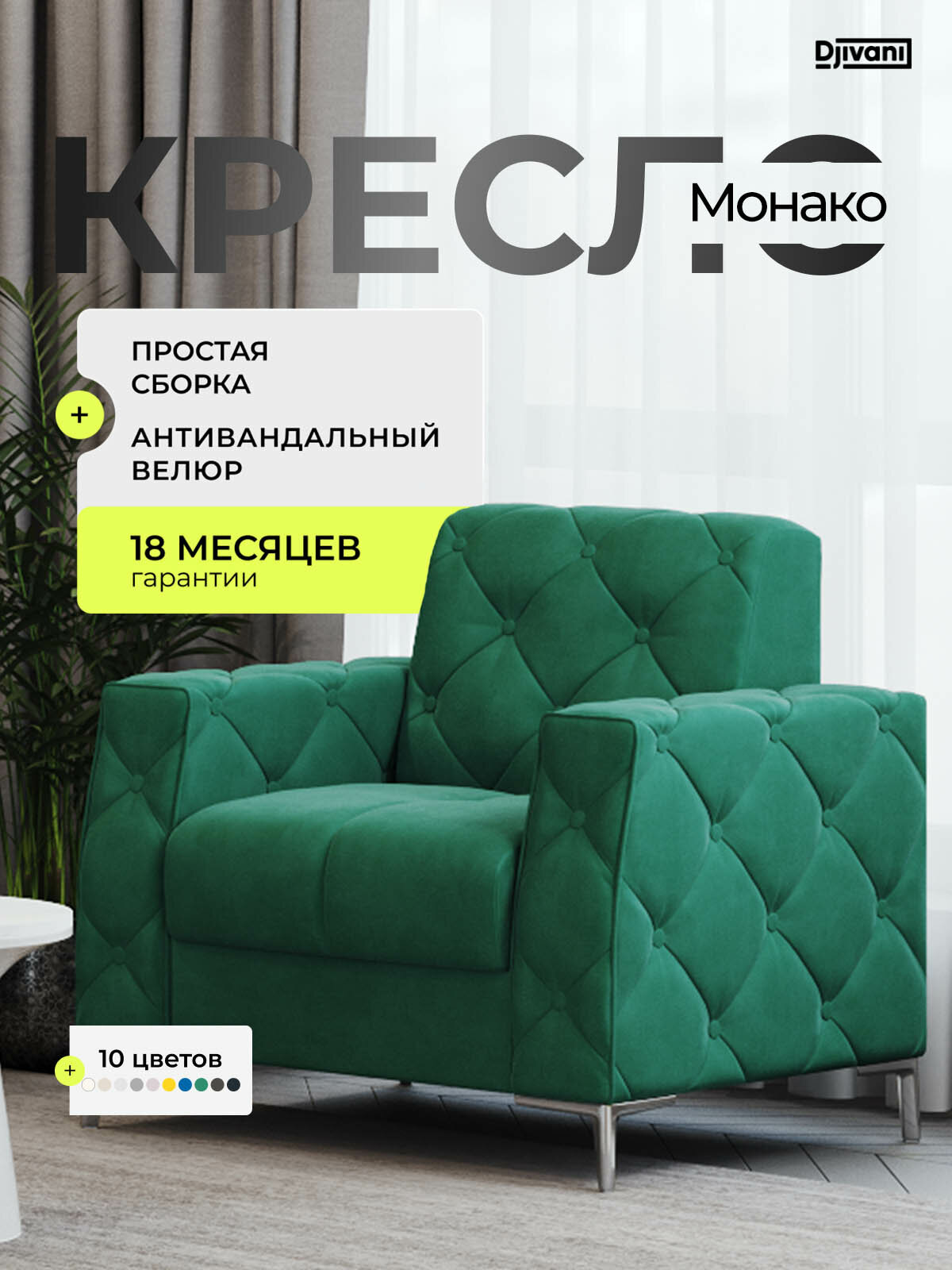 Купить Кресло Djivani Монако , с подлокотниками, велюр, зелёный, ножки — хром с доставкой по всей России. Кресло Djivani Монако , с подлокотниками, велюр, зелёный, ножки — хром: сравнение цен, характеристики, фото, актуальное наличие и цены.