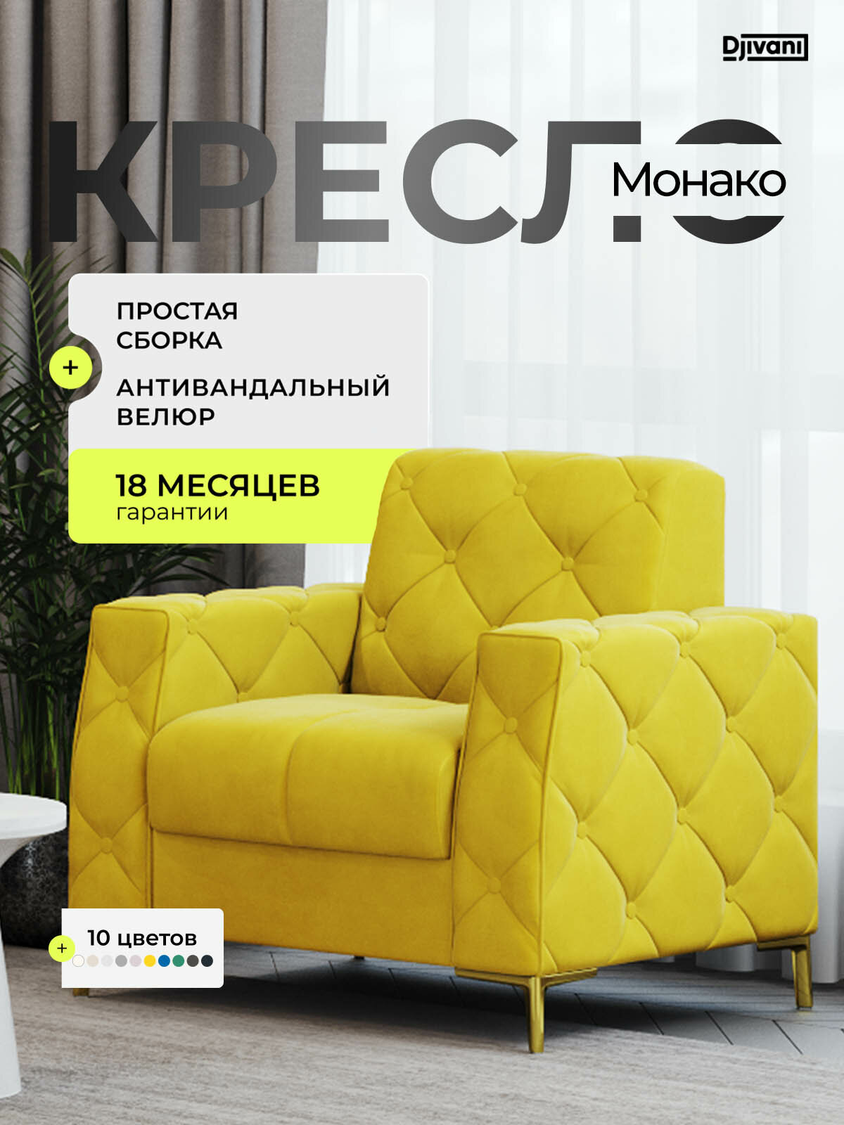 Купить Кресло Djivani Монако , с подлокотниками, велюр, жёлтый, ножки — золото с доставкой по всей России. Кресло Djivani Монако , с подлокотниками, велюр, жёлтый, ножки — золото: сравнение цен, характеристики, фото, актуальное наличие и цены.