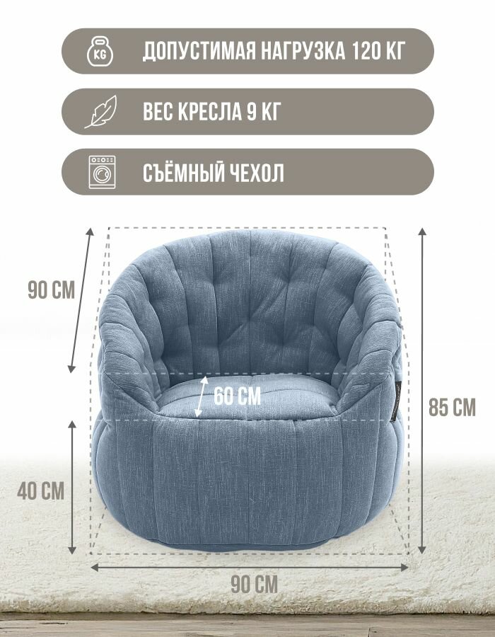 Мягкое дизайнерское кресло для отдыха aLounge — Butterfly Sofa — Blue Jazz (шенилл, голубой)