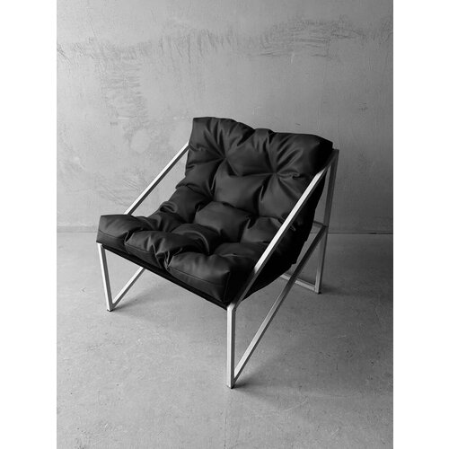 Купить Кресло мягкое удобное для отдыха, уличное, на балкон, на веранду, в стиле лофт, минимализм, Слэш + кожзам черный с доставкой по всей России.