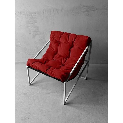 Купить Кресло мягкое удобное для отдыха, уличное, на балкон, на веранду, в стиле лофт, минимализм, Слэш + велюр красный с доставкой по всей России.