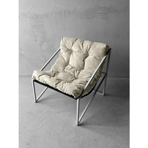 Купить Кресло мягкое удобное для отдыха, уличное, на балкон, на веранду, в стиле лофт, минимализм, Слэш + велюр молочный с доставкой по всей России.