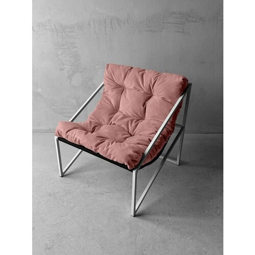 Купить Кресло мягкое удобное для отдыха, уличное, на балкон, на веранду, в стиле лофт, минимализм, Слэш + велюр розовый с доставкой по всей России.