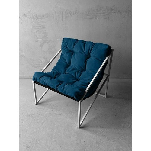Купить Кресло мягкое удобное для отдыха, уличное, на балкон, на веранду, в стиле лофт, минимализм, Слэш + велюр синий с доставкой по всей России.