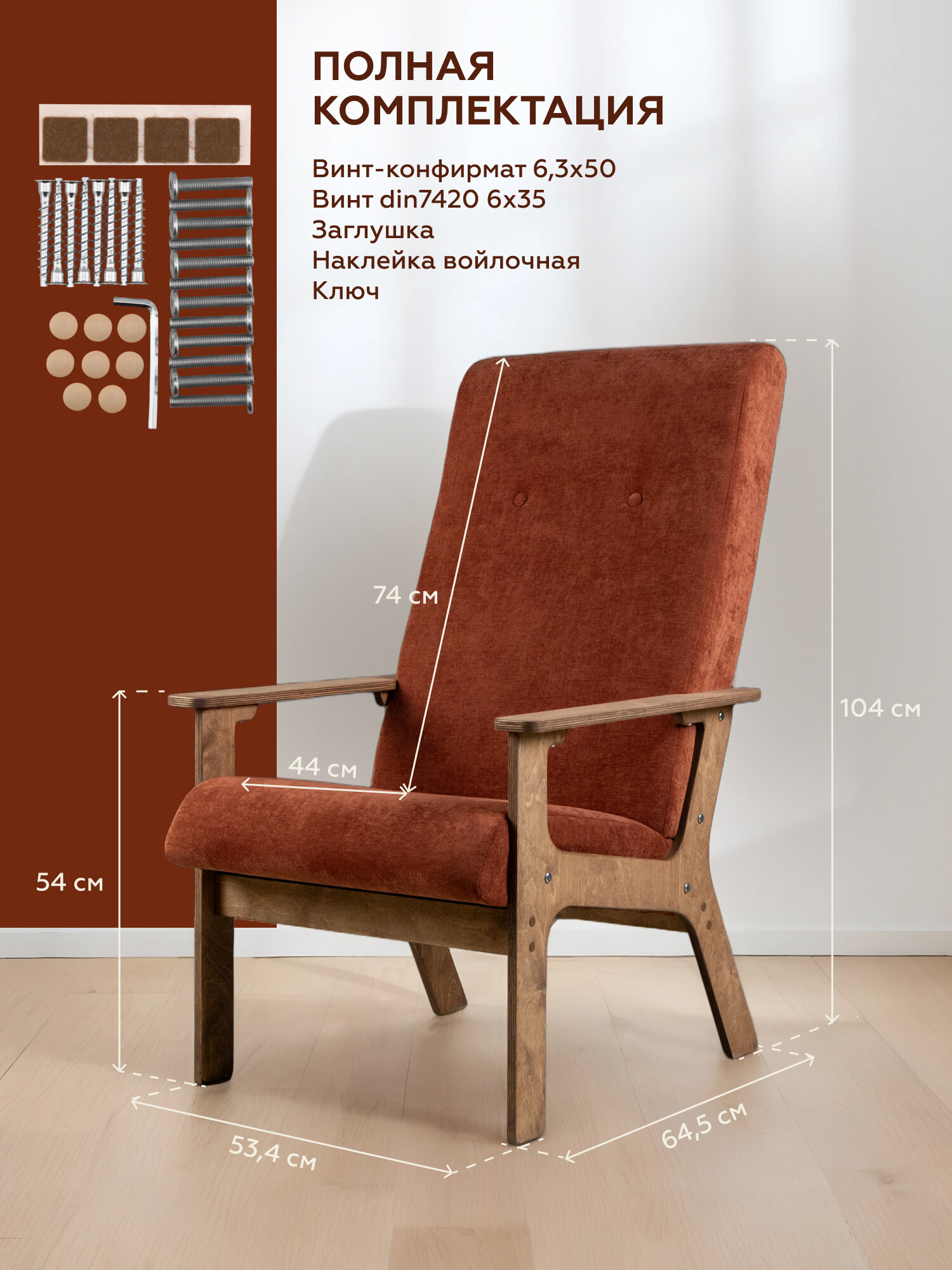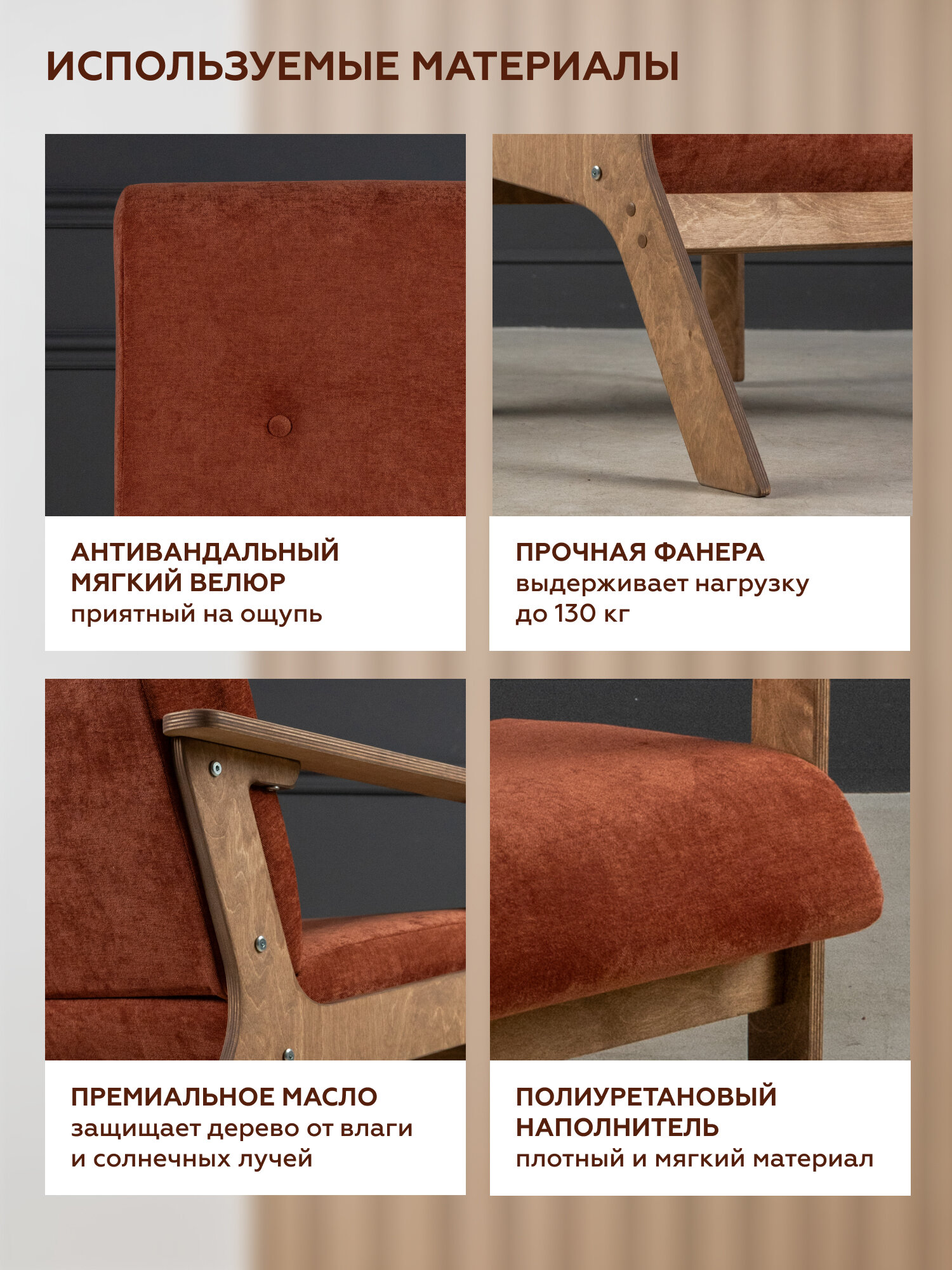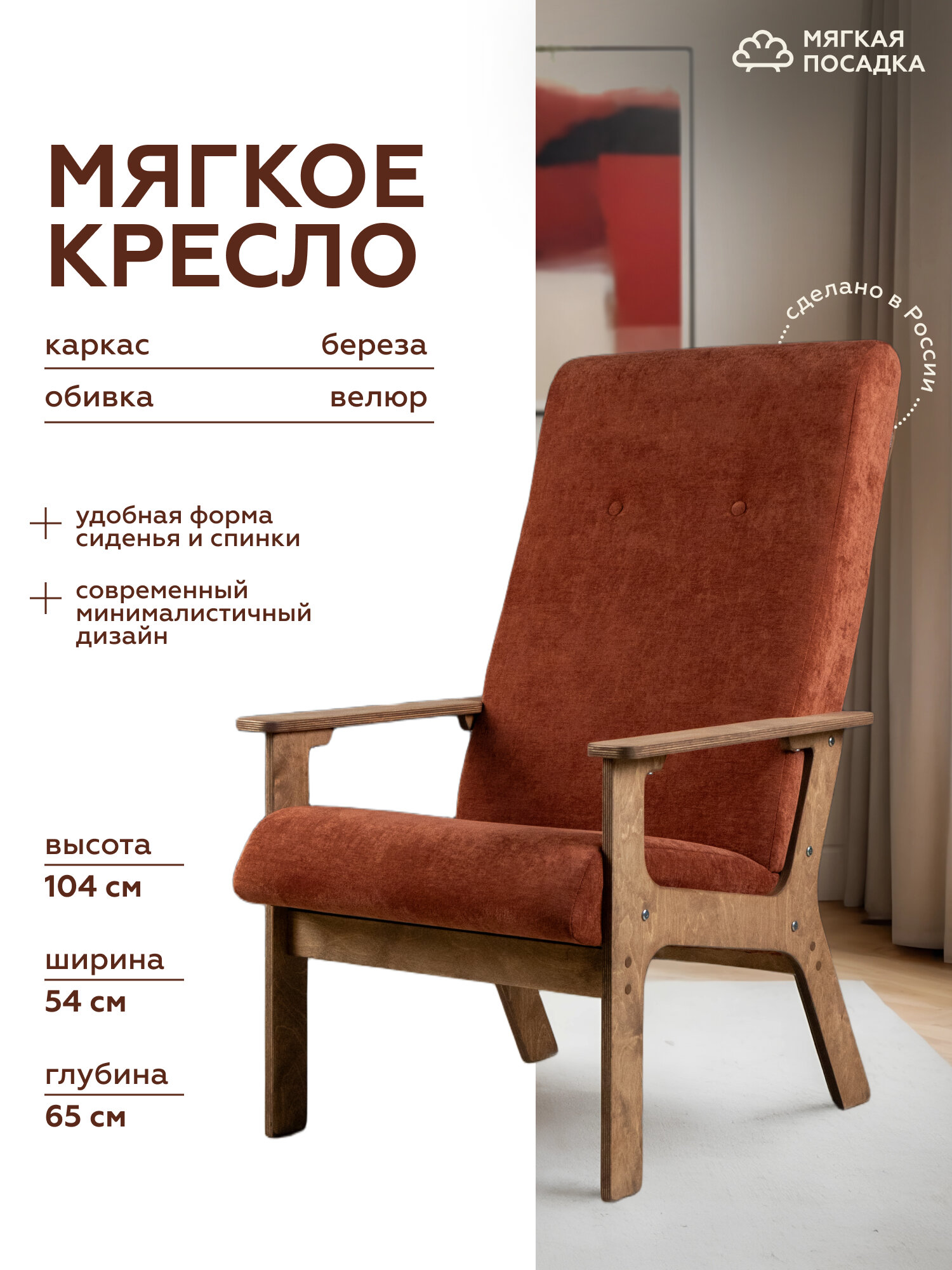 Кресло для отдыха «ретро» от «Мягкой посадки» обивка терракотовый велюр, 62х80х104 см: сравнение цен, характеристики, фото, актуальное наличие и цены.