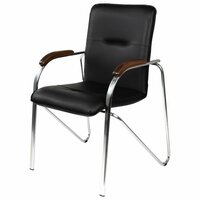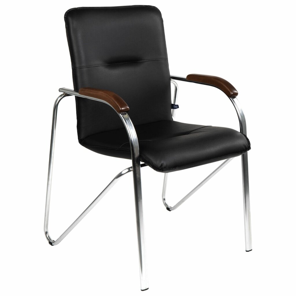 Кресло для приемных и переговорных «Samba», деревянные накладки, хромированный каркас, кожзам черный: сравнение цен, характеристики, фото, актуальное наличие и цены.