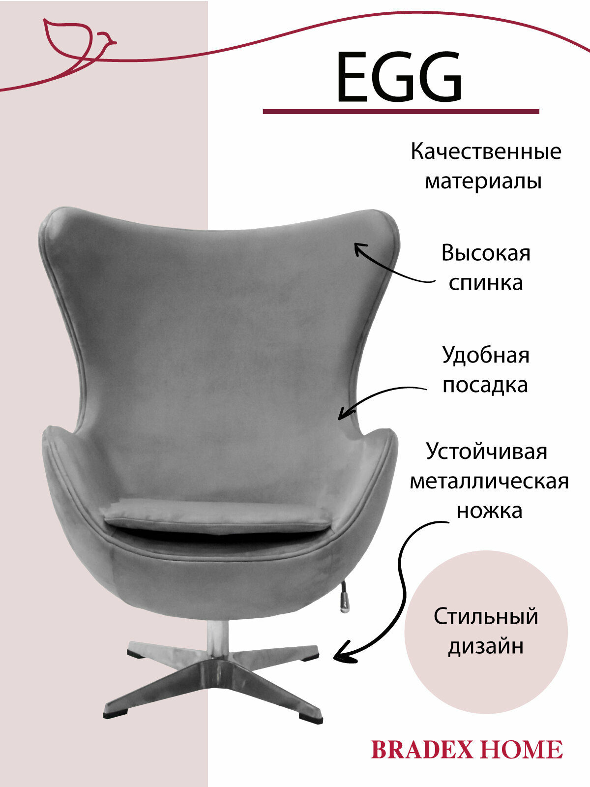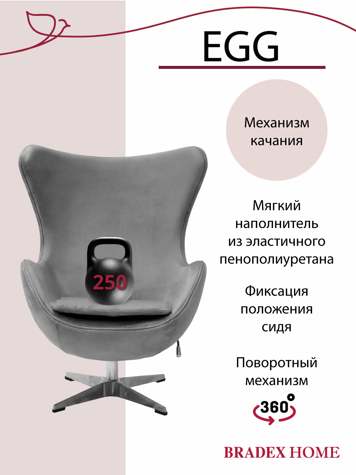 Кресло качалка EGG серое замша, взрослое, крутящееся мягкое круглое на ножке, интерьерное для дома в гостиную для отдыха: сравнение цен, характеристики, фото, актуальное наличие и цены.