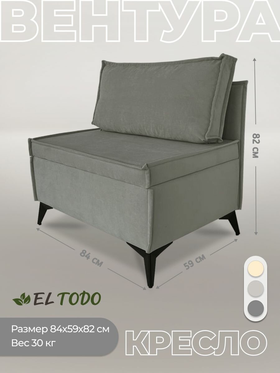 Кресло EL TODO вентура с ящиком для хранения, на кухню, на балкон, в прихожую, велюр, серый, 84х59х82 см (ШхГхВ): сравнение цен, характеристики, фото, актуальное наличие и цены.