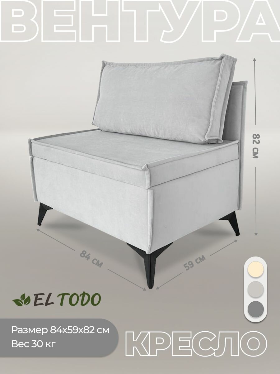 Кресло EL TODO вентура с ящиком для хранения, на кухню, на балкон, в прихожую, велюр, светло-серый, 84х59х82 см (ШхГхВ): сравнение цен, характеристики, фото, актуальное наличие и цены.