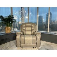 Электро кресло реклайнер выполнено в классическом стиле с элегантными линиями и формами, в светло серой цветовой гамме, идеально подходящее для любого интерьера комнаты.