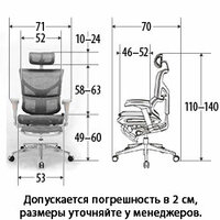 | Регулировка | высоты подголовника, высоты подлокотников, высоты поясничного упора, высоты сиденья, высоты спинки, глубины положения подлокотников, глубины сиденья, жесткости качания, наклона спинки, угла наклона подголовника, угла подлокотников |