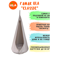 Подвесное кресло - гамак "Classic" серии ULA с подушкой в комплекте. Главное достоинство - практичные материалы в красивом исполнении! Гамак - отличный аксессуар для детских игр и прекрасное дополнение к шведской стенке! Модный детский подвесной гамак в форме капли организует занимательный спортивный уголок в квартире и на улице. Подушка специальной формы "Облако" и гамак выполнены из ткани "Оксфорд" с водоотталкивающей пропиткой. Пуф легко вынуть, благодаря водоотталкивающей ткани чехол легко стирать. Размер качелей 1,5 х 0,6 х 0,6 м, диаметр пуфа 60 см. Рекомендуемая нагрузка до 50 кг. Преимущества серии: прочность, износостойкость и неприхотливость в эксплуатации. Данное изделие отлично подойдет для использования дома и даже на улице в летний сезон.