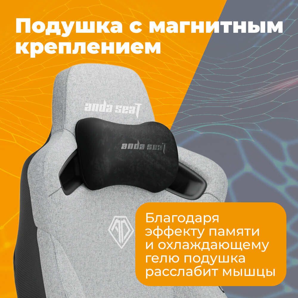 Он наполнен пеной с эффектом памяти, а за счет магнитов подголовник надежно крепится к спинке и сможет держать голову и шею в правильном положении столько, сколько понадобится. Но есть и еще один важный нюанс. Магниты не просто соединяют подушку с верхней частью спинки — они также позволяют перемещать подголовник немного вверх или вниз, чтобы вы могли комфортнее расположиться в своем кресле.