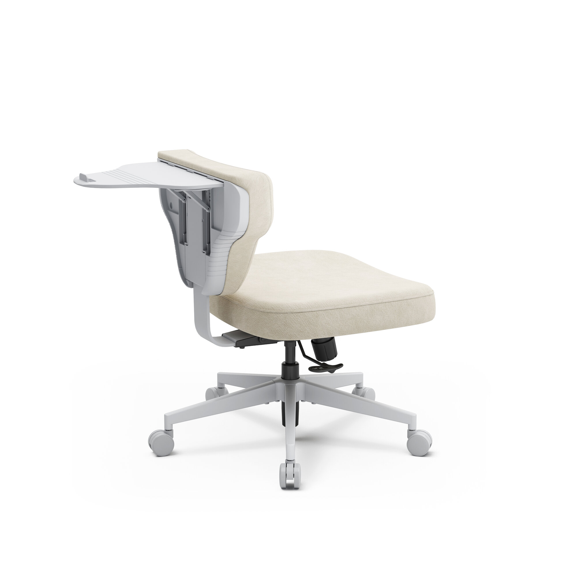FoxGear SHORTZ - стильное и функциональное решение для работы с ноутбуком, для которого предусмотрена надежная регулируемая полка, встроенная в кресло.