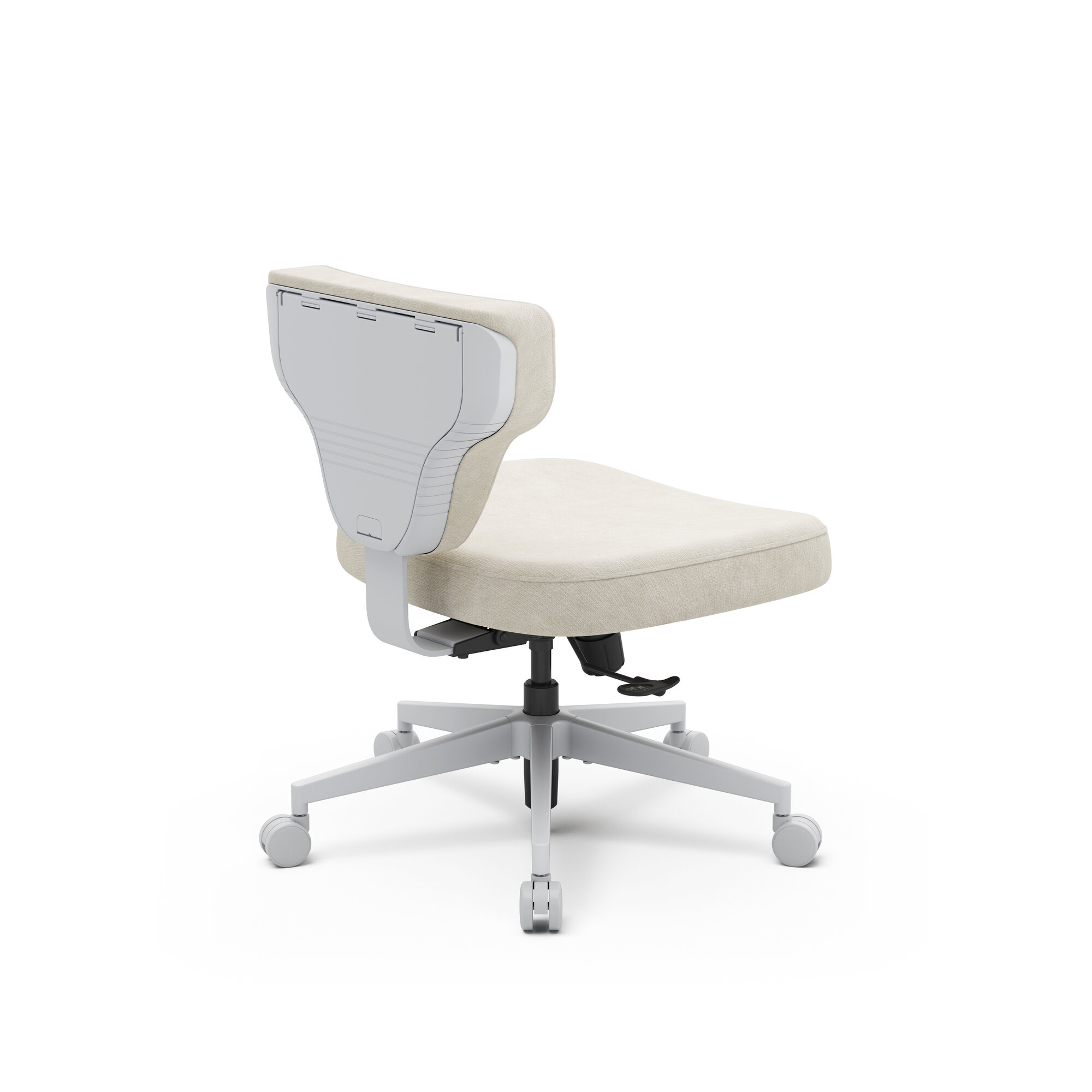 Его минималистичный дизайн идеально подходит для небольших помещений, так как кресло не занимает много места и легко задвигается под стол. Отсутствие подлокотников делает кресло удобным для людей любой комплекции, обеспечивая свободу движений и комфорт при работе.