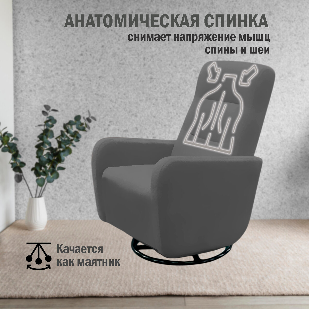 Его плавные движения помогут забыть о суете дня, постепенно убаюкивая вас в спокойное состояние. Для дома модели особенно популярны благодаря своей способности гармонично вписываться в уютный интерьер гостиной или спальни. Оно позволяет удобно устроиться и полностью насладиться моментом тишины и спокойствия. Красивая форма привнесет элегантность и стиль в ваше жилое пространство. Современные конструкции делают его не только эстетически привлекательным, но и долговечным, отвечающим разным требованиям эксплуатации. Эта мебель подходит разнообразию стилей помещения за счет универсальных дизайнерских решений, которые легко вписываются в уже имеющуюся обстановку. Приятная на ощупь поверхность добавляет удовольствия от взаимодействия с изделием.