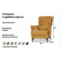 Глубина сиденья 46 см, Высота сиденья 42 см, Высота спинки 50 см, Высота подлокотника 59 см, Высота ножек 12 см, Минимальный размер дверного проема 80 см