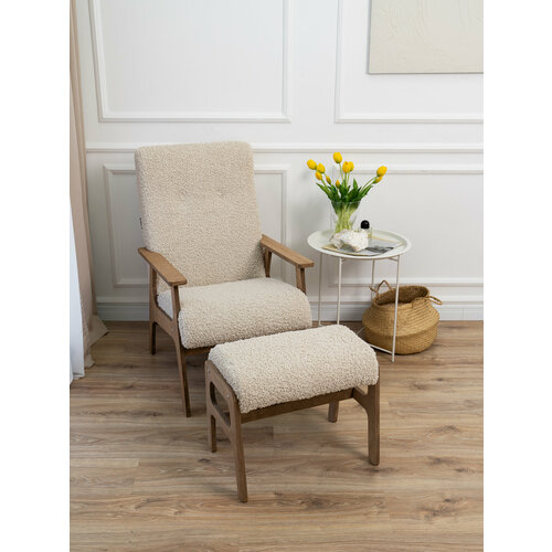 Купить Кресло мягкое в гостиную ZASIDELIS модель Chill с пуфом для ног, на балкон, для дома, для отдыха в спальню, для кухни, интерьерное лофт, кухонное дизайнерское, деревянное 1 шт. с доставкой по всей России.