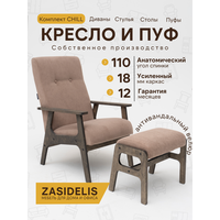 Купить Кресло мягкое в гостиную ZASIDELIS модель Chill с пуфом для ног, на балкон, для дома, для отдыха в спальню, для кухни, интерьерное лофт, кухонное дизайнерское, деревянное 1 шт. с доставкой по всей России.