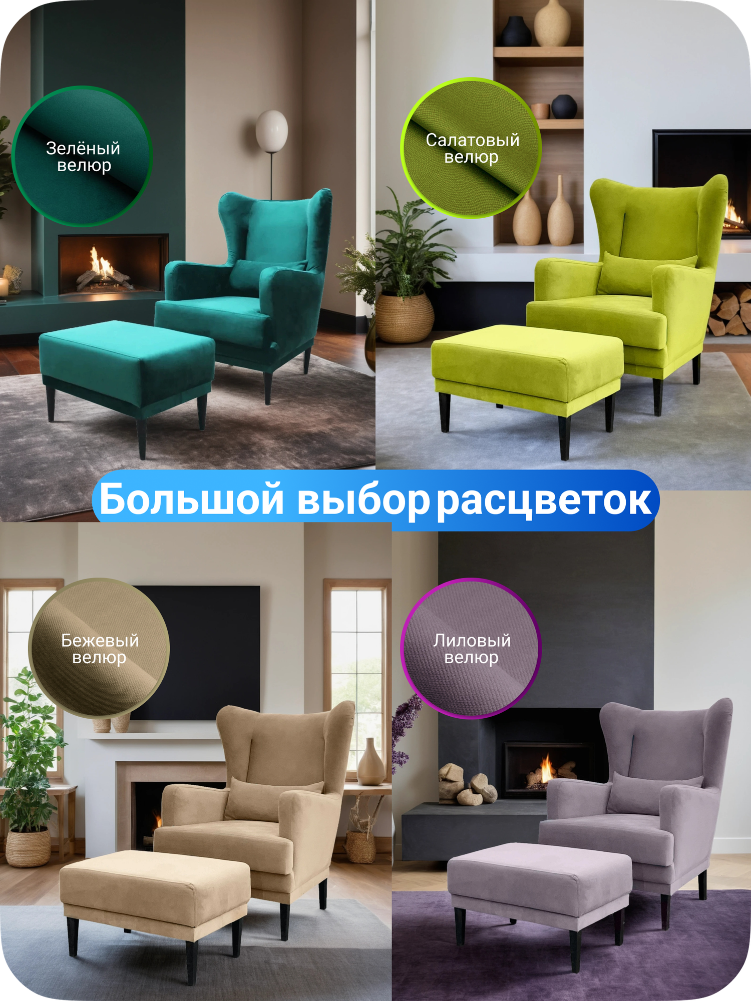 Купить Кресло и пуф «Прованс» Центр Мебель, велюр, с подлокотниками, комплект с доставкой по всей России.