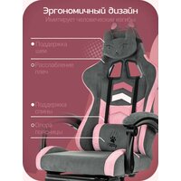 Кресло компьютерное игровое KNIGHT KITTY для дома, для комнаты. Подойдет как для взрослого, так и для школьника. Можно использовать как офисное. Подходит в офис или кабинет. Модель современная для любого интерьера. Надежный корпус и долговечный наполнитель высокой плотности. Основа спинки - сварной металлический каркас. Чехлы сиденья и спинки выполнены из ткани высокой износостойкости. Простой уход за обивкой. Имеет регулировку высоты с помощью газлифта. Максимальная нагрузка – 120 кг. Кресло установлено на прочную 5-лучевую основу из пластика, в которую надежно закреплены колесики. В комплекте две эргономичные подушки для поддержки шеи и поясницы с вышивкой «KITTY». Для дополнительного комфорта в кресле предусмотрена выдвижная подножка. Система AIR на спинке кресла для вентиляции спины. Удобные анатомические подвижные подлокотники с мягкими накладками из ткани. Производство в России. Простая сборка. Соответствует стандарту BIFMA.