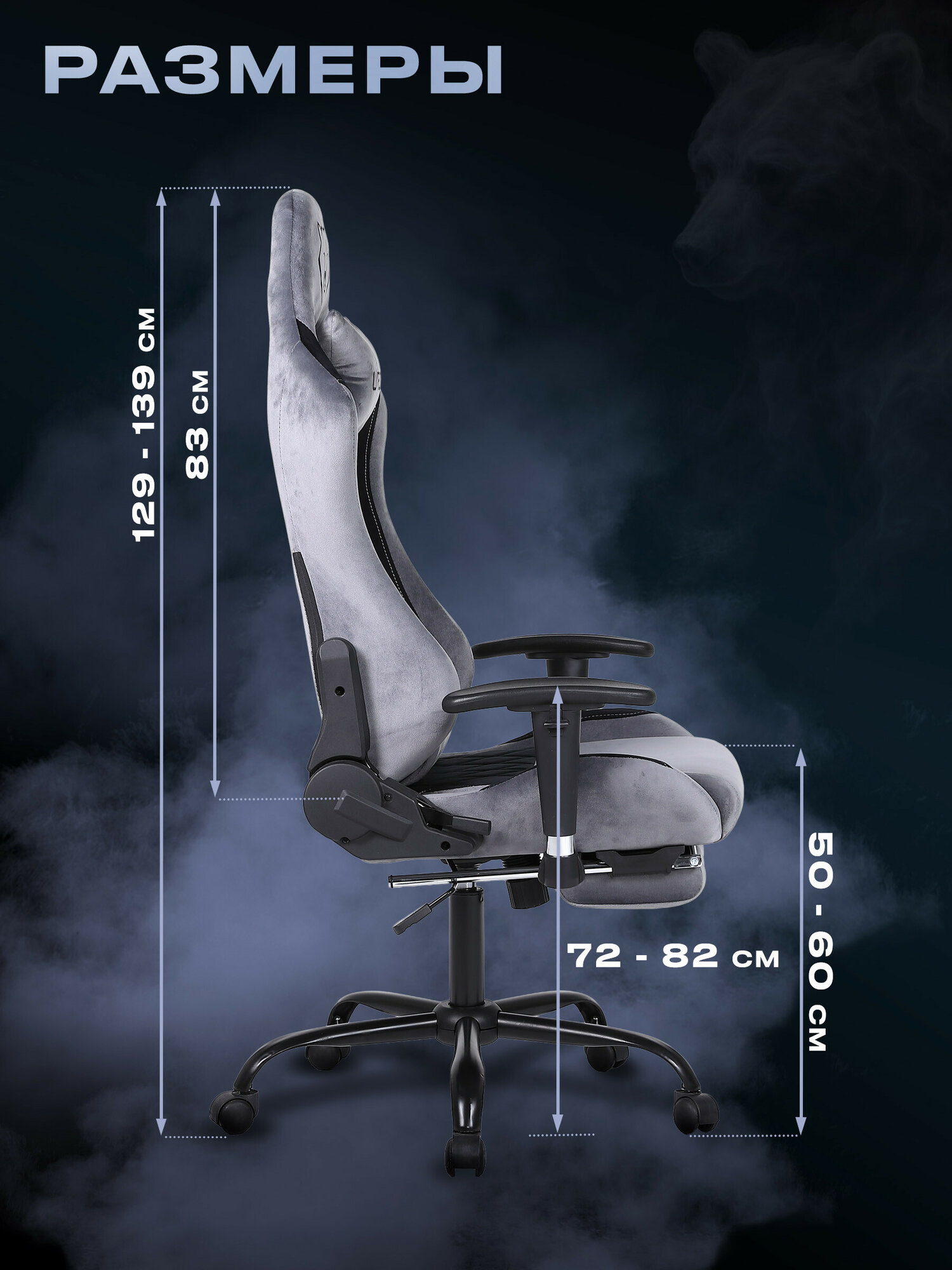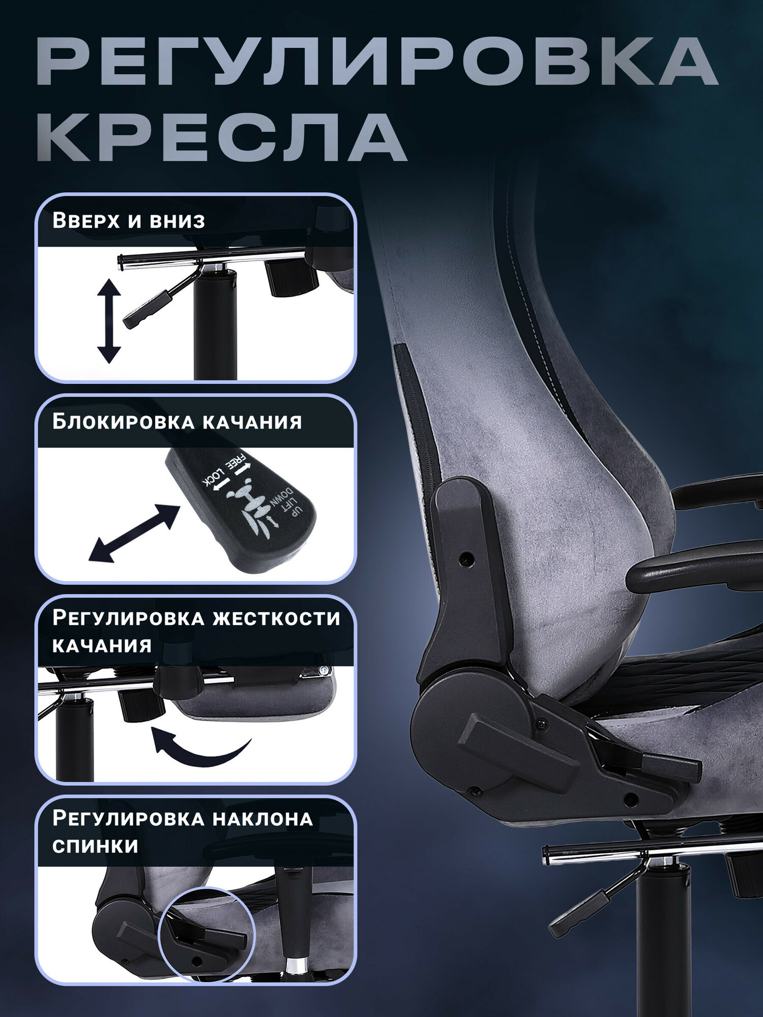 Кресло геймерское URZUS Smoke (UR-7351115) - это надежное, функциональное кресло, облаченное в роскошный, мягкий, дышащий, тактильно безупречный велюр. Практичные рациональные механизмы.