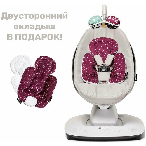 Кресло-качалка 4moms mamaRoo New серебро+подарок (Вкладыш для новорожденного 4moms Maroon-Plush)