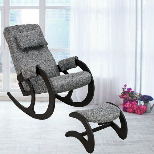 Кресло-качалка AVK Блюз, с банкеткой, рогожка/фанера, пенополиуретан, серый/венге