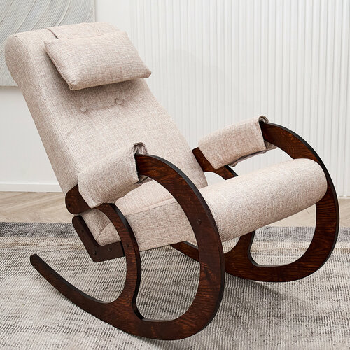 Кресло-качалка для дома и дачи из серии Блюз с удобный углом наклона спинки, мягким подголовником и подлокотниками. При изготовлении полозьев используется 3D-технология тиснения «под дерево». Обивка кресла выполнена из мягкой, качественной рогожки. Стильный дизайн кресла-качалки отлично впишется в любой уголок Вашего дома или дачи, будь то гостиная, спальня, кабинет или домашний офис. Кресло-качалка отлично подойдет для отдыха взрослому человеку после тяжелого трудового дня или, как кресло-качалка для кормления и укачивания малыша на руках. Особенности кресла-качалки: подголовник на липучках, который можно регулировать по высоте или снять совсем.