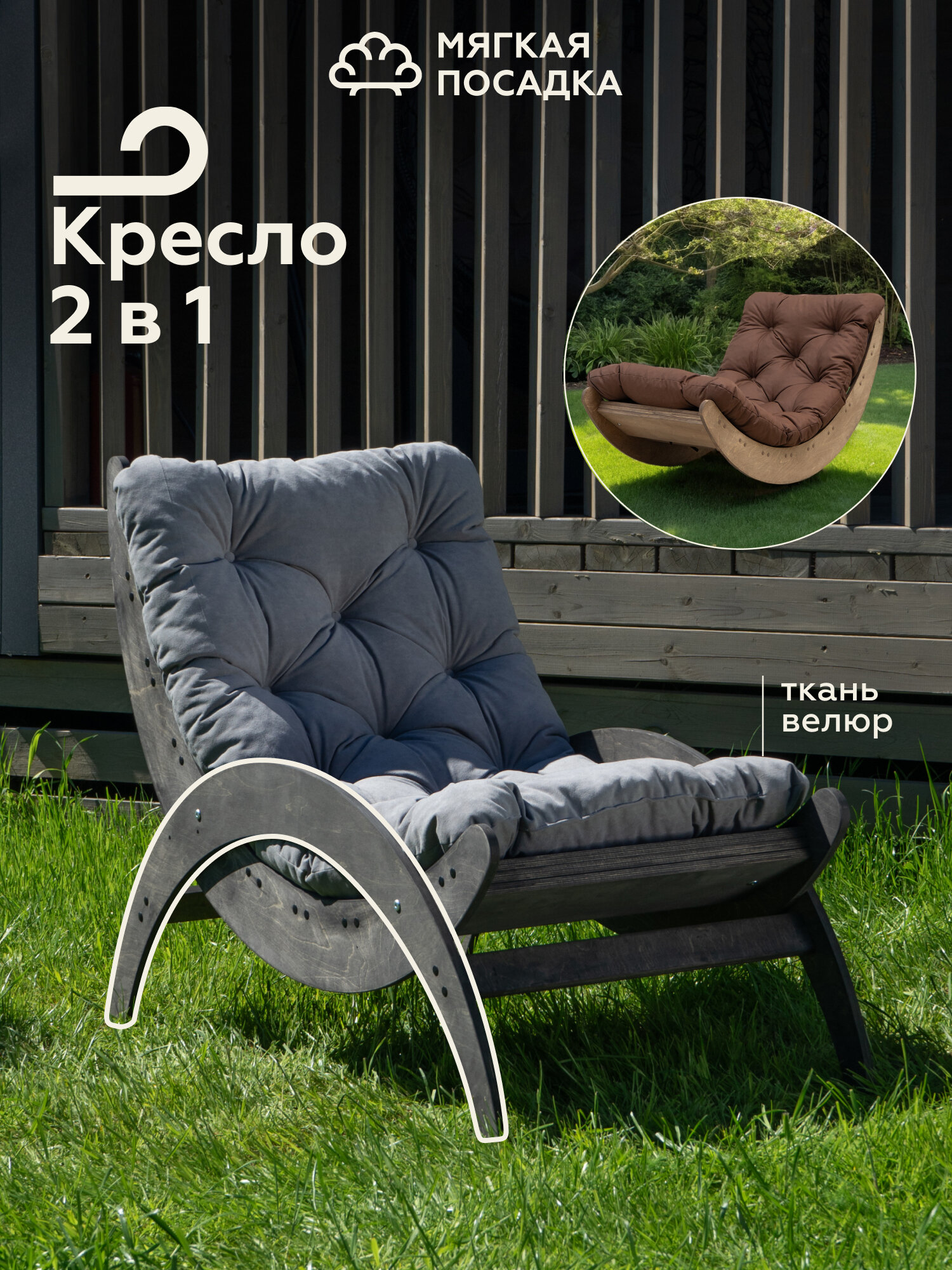 Купить Кресло-качалка для дома и отдыха «Лагуна», цвет темный + серая подушка из велюра с доставкой по всей России.