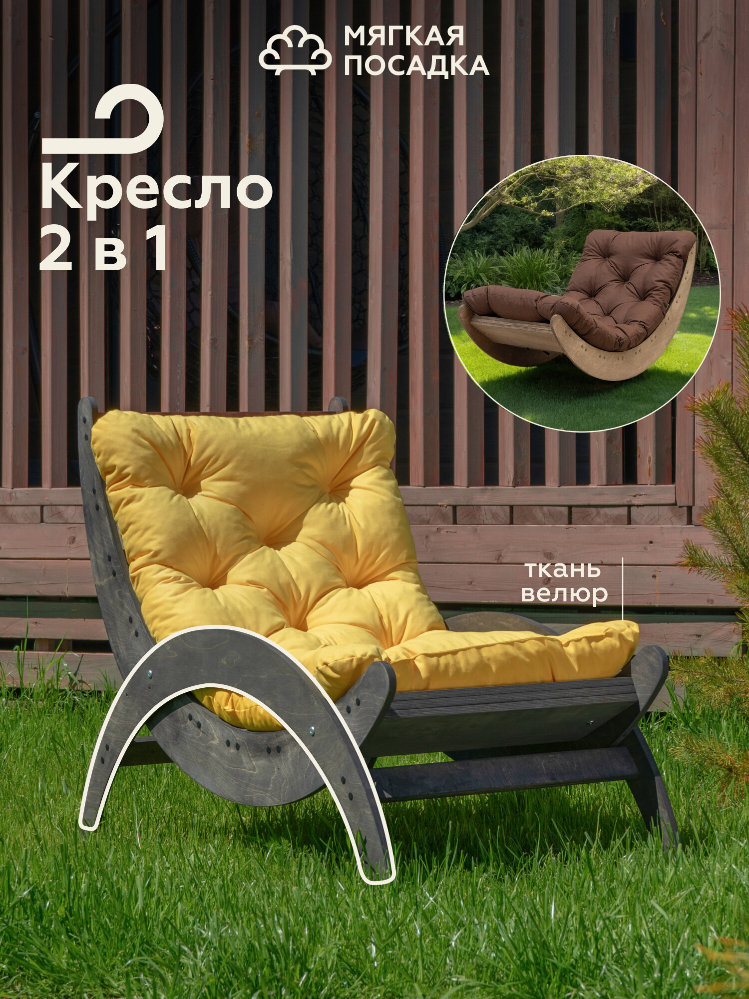 Купить Кресло-качалка для дома и отдыха «Лагуна», цвет темный + желтая подушка из велюра с доставкой по всей России.