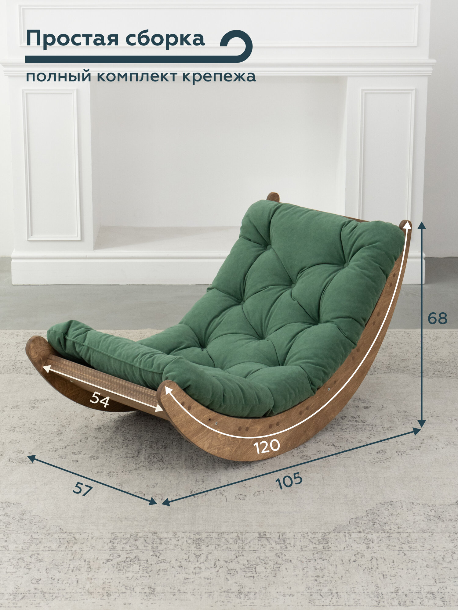 Кресло-качалка для дома и отдыха «ВОЛНА», цвет светлый дуб + зеленая подушка: сравнение цен, характеристики, фото, актуальное наличие и цены.