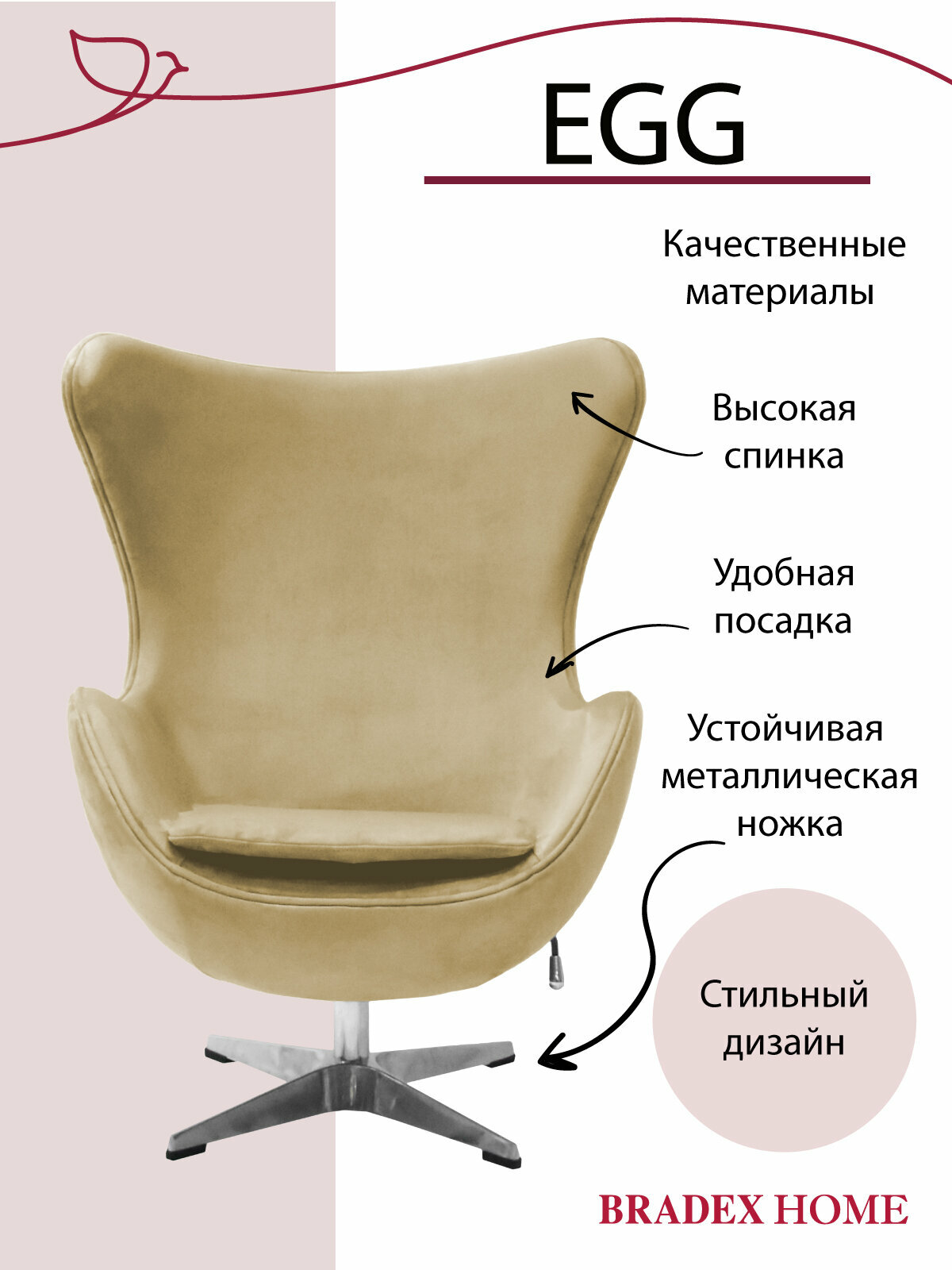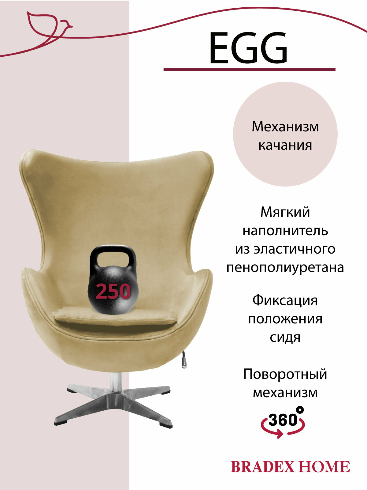 Кресло качалка EGG карамельное латте замша, взрослое, крутящееся мягкое круглое на ножке, интерьерное для дома в гостиную для отдыха: сравнение цен, характеристики, фото, актуальное наличие и цены.