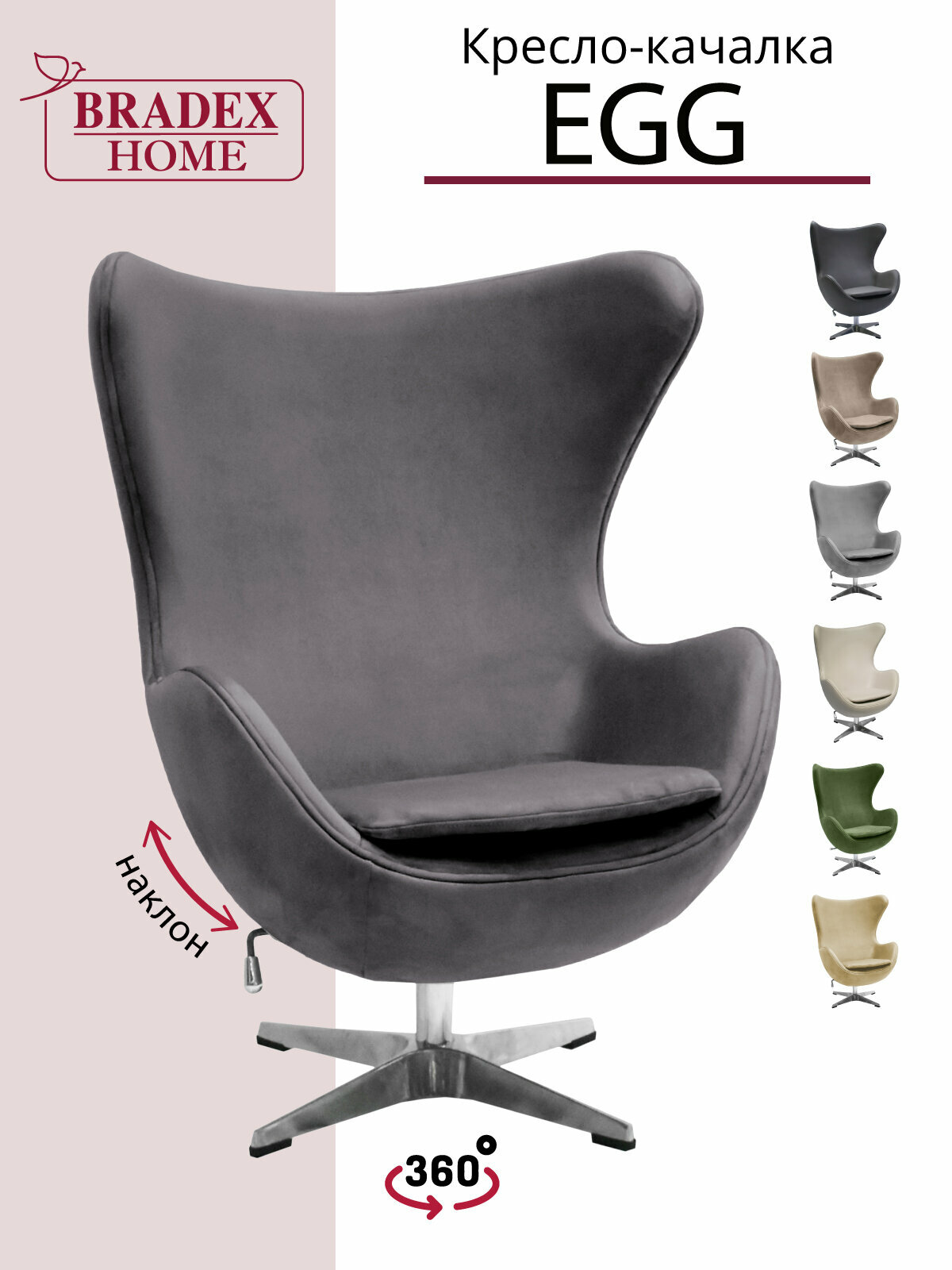 Кресло качалка EGG темно-серое, обивка искусственная замша, для отдыха взрослое крутящееся мягкое круглое на ножке, офисное для руководителя, интерьерное для дома в гостиную: сравнение цен, характеристики, фото, актуальное наличие и цены.