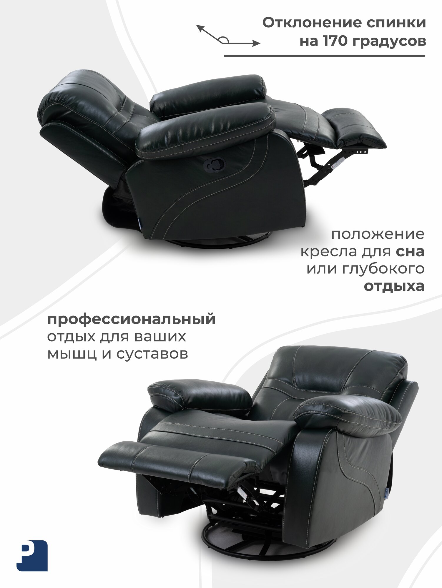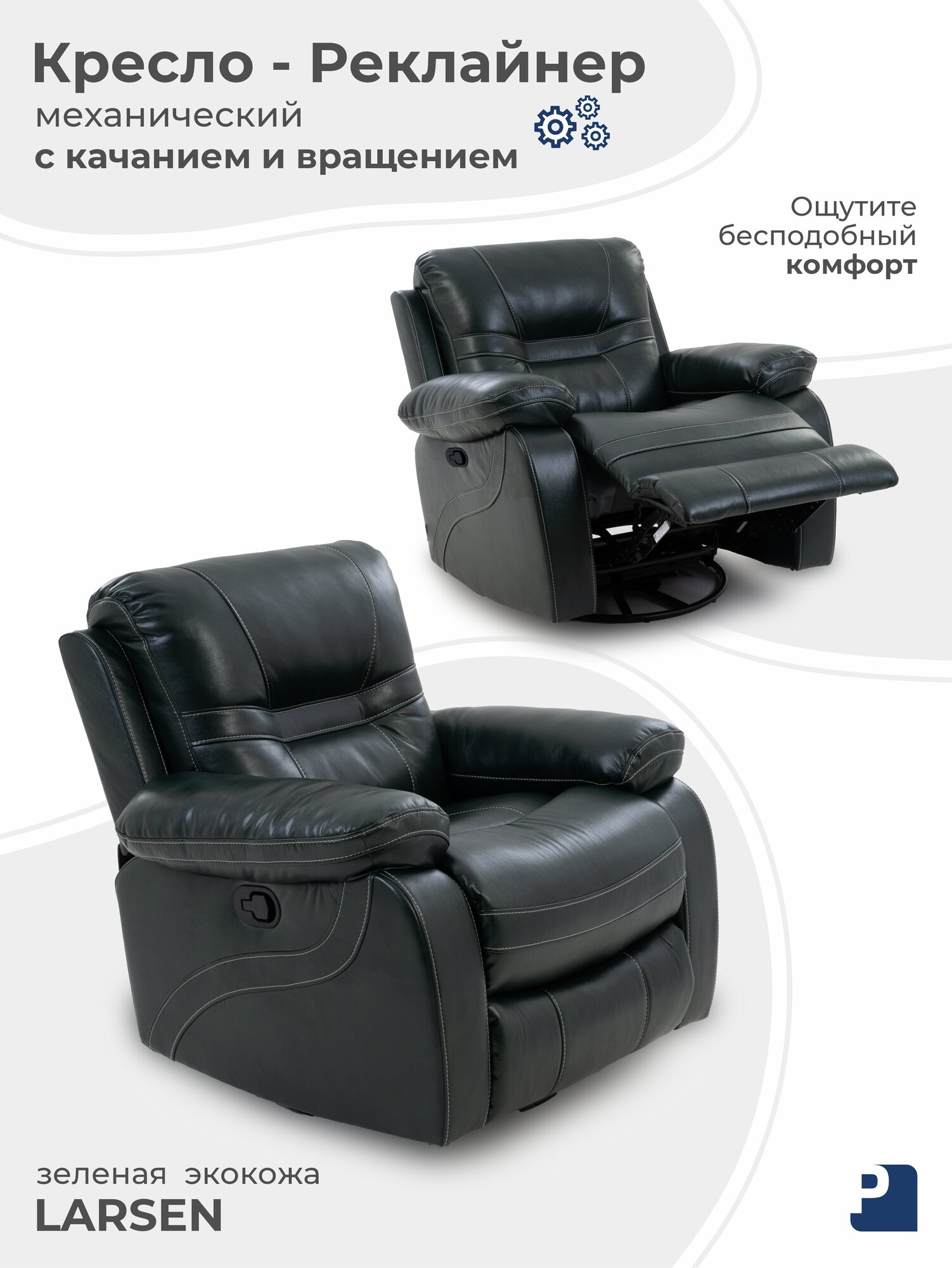 Кресло качалка LARSEN , реклайнер механический с качанием и вращением экокожа зеленый, Мебельное бюро Перевалов: сравнение цен, характеристики, фото, актуальное наличие и цены.