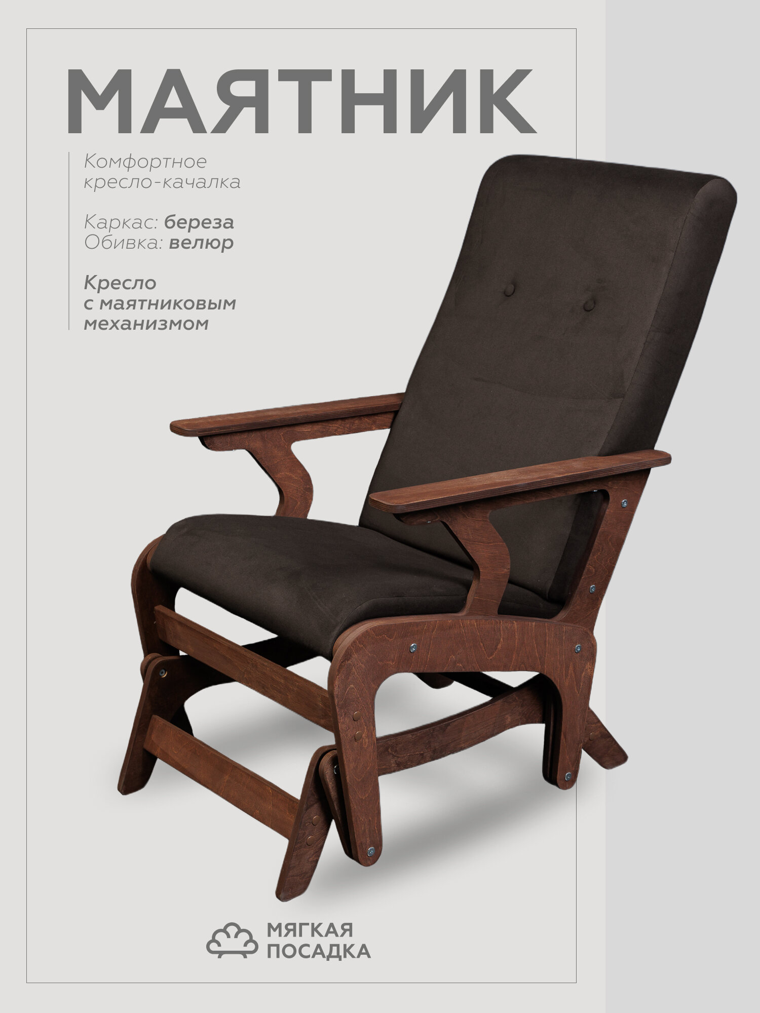 Кресло-качалка МЯГКАЯ ПОСАДКА «Маятник», коричневый велюр, для взрослых, анатомическая спинка: сравнение цен, характеристики, фото, актуальное наличие и цены.