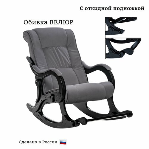 Кресло-качалка традиционной конструкции. Боковины и подлокотники данной модели изготовлены из дерева. Кресло-качалка имеет удобную выдвижную подножку. Максимальный комфорт во время отдыха создают эргономичная форма сиденья и спинки, мягкие подголовник и подлокотники, угол наклона кресла и оптимальная амплитуда качания.