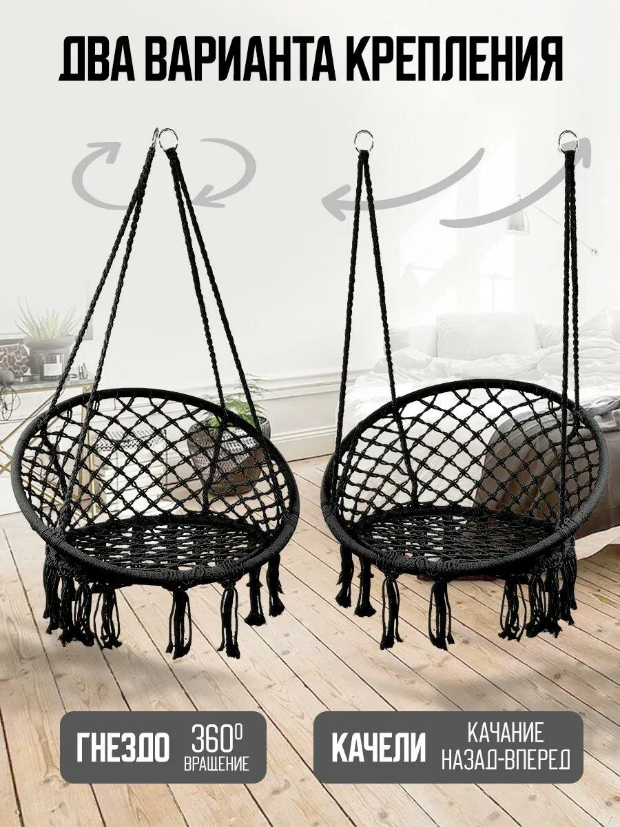 Купить Кресло-качели гамак, подвесные, плетеные, садовые, черные, максимальная нагрузка 120 кг с доставкой по всей России.