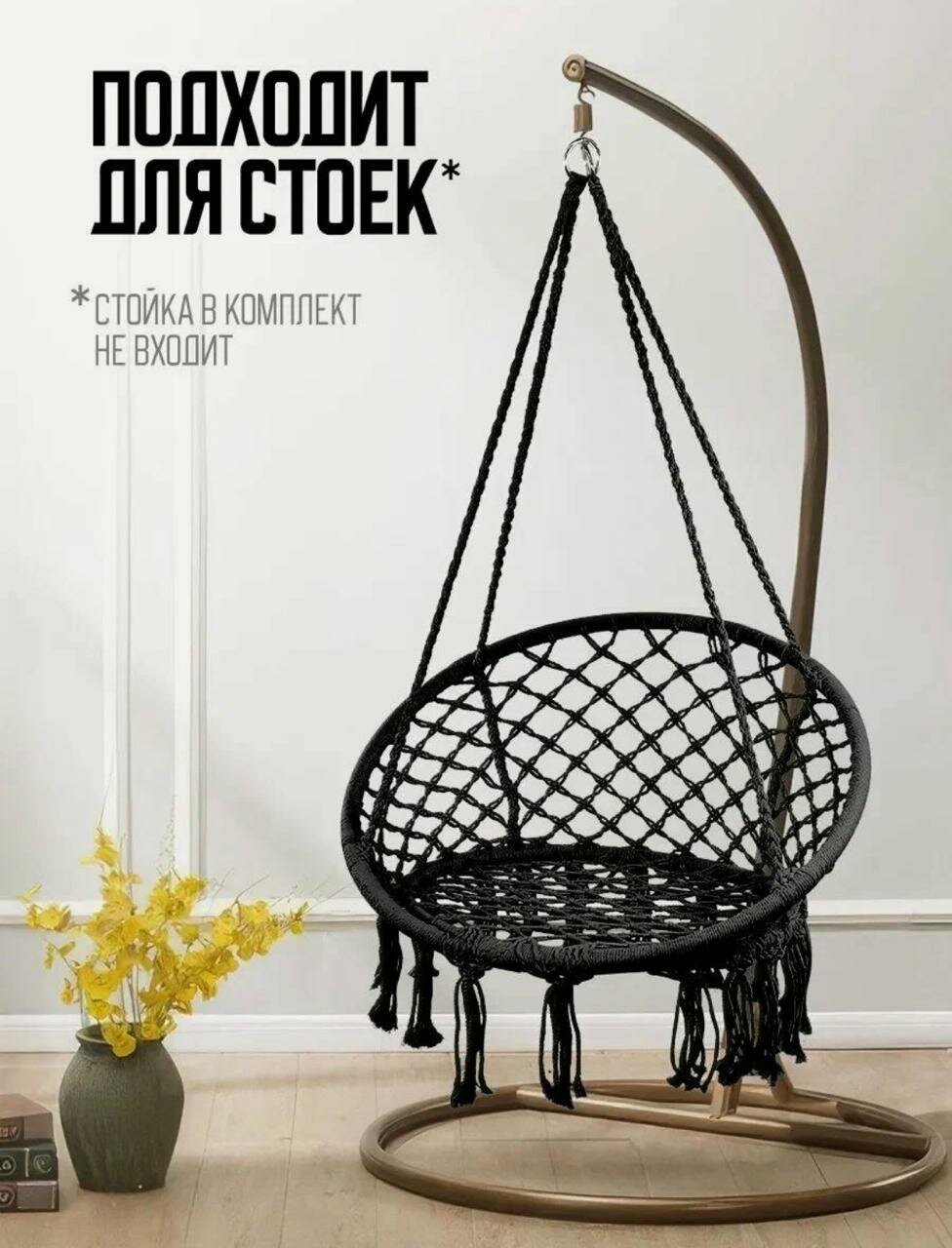 Купить Кресло-качели гамак, подвесные, плетеные, садовые, черные, максимальная нагрузка 120 кг с доставкой по всей России.