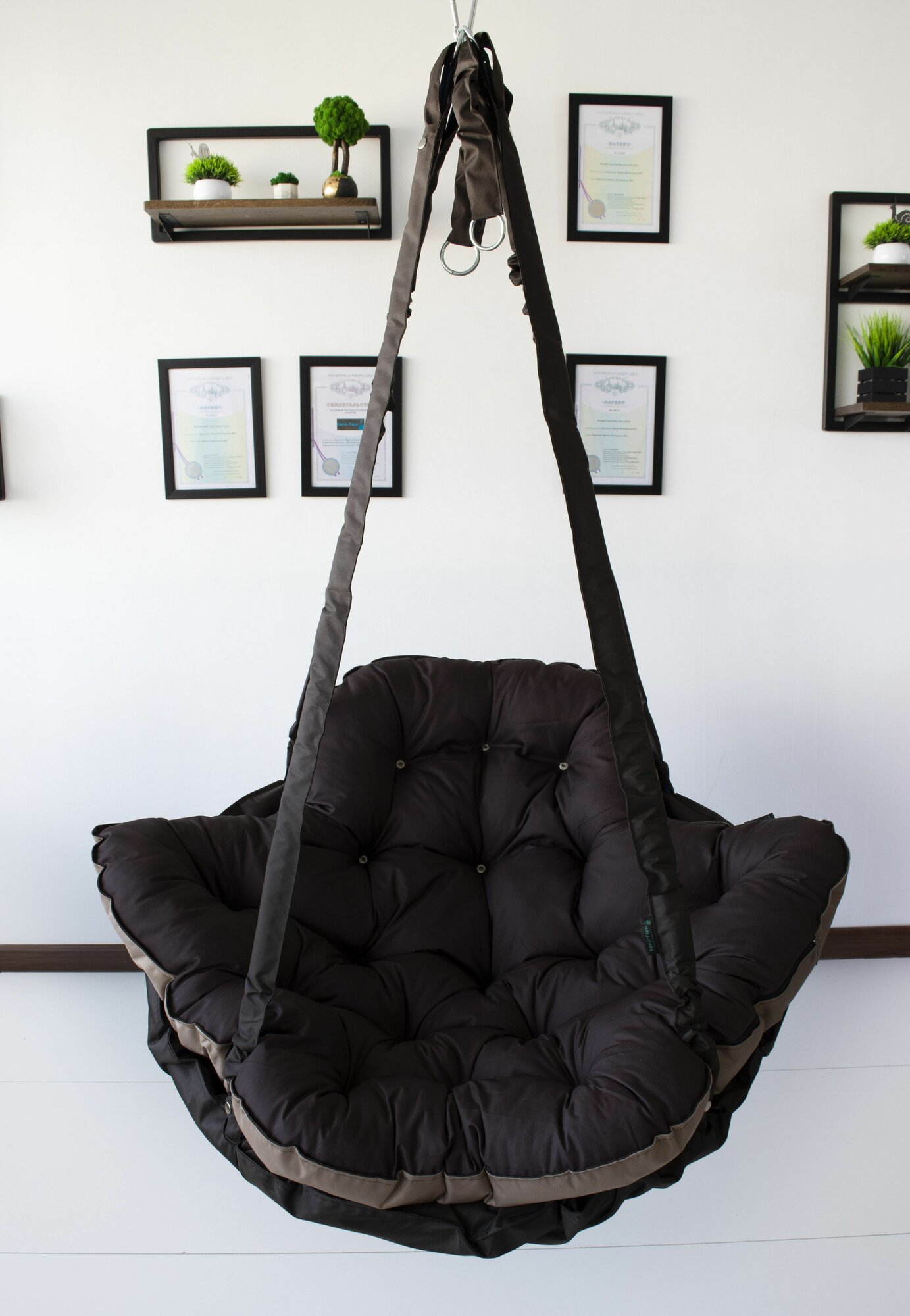 Кресла качели для дома и сада бренда Mamsi-Papsi созданы на профессиональном оборудовании последнего поколения. Подходят как для детей, так и для взрослых. Гарантия 1 год. Садовые качели запатентованы и сертифицированы. Нагрузка 200кг. Вес садовой качели 10-12 кг, высота качели-кокон 170см, с креплением 230см.(при необходимости, можно удлинить с помощью цепи) размер: 90см х 90см. В комплект входит: основа качели в собранном виде -1шт, матрас -1шт, цепь 50см-1шт, 1шт-анкера, 2-шт карабина.
