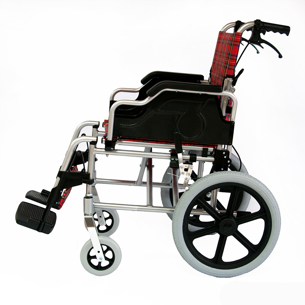 Эффективная ширина сидения – 46 см Усиленная двойная рама из анодированного алюминия Складная конструкция Складная спинка Ручные тормоза для сопровождающего Откидные подлокотники Пневматические задние колеса Стояночные тормоза характеристики: