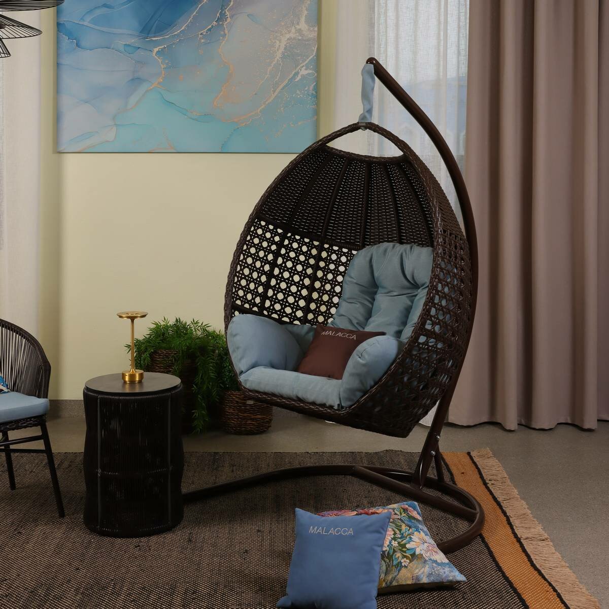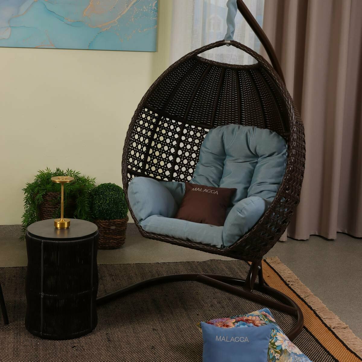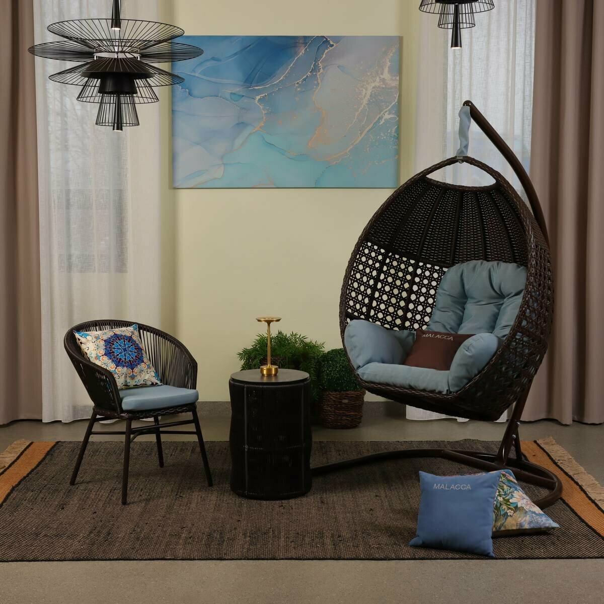 Кресло-кокон из экоротанга Авиано от Malacca, венге кожа, подушка голубая Olefin: сравнение цен, характеристики, фото, актуальное наличие и цены.