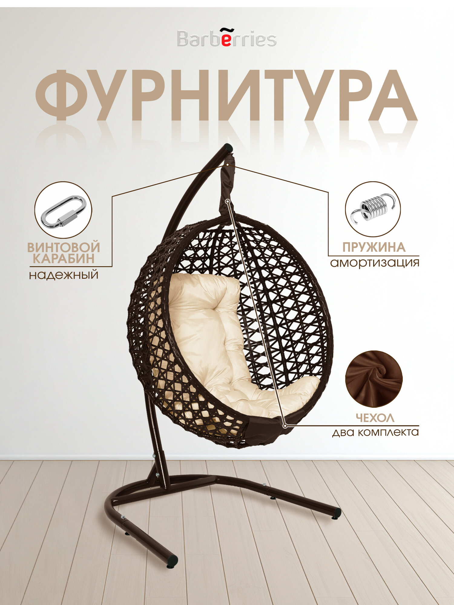 Качели подвесные садовые Комфорт коричневый-бежевый