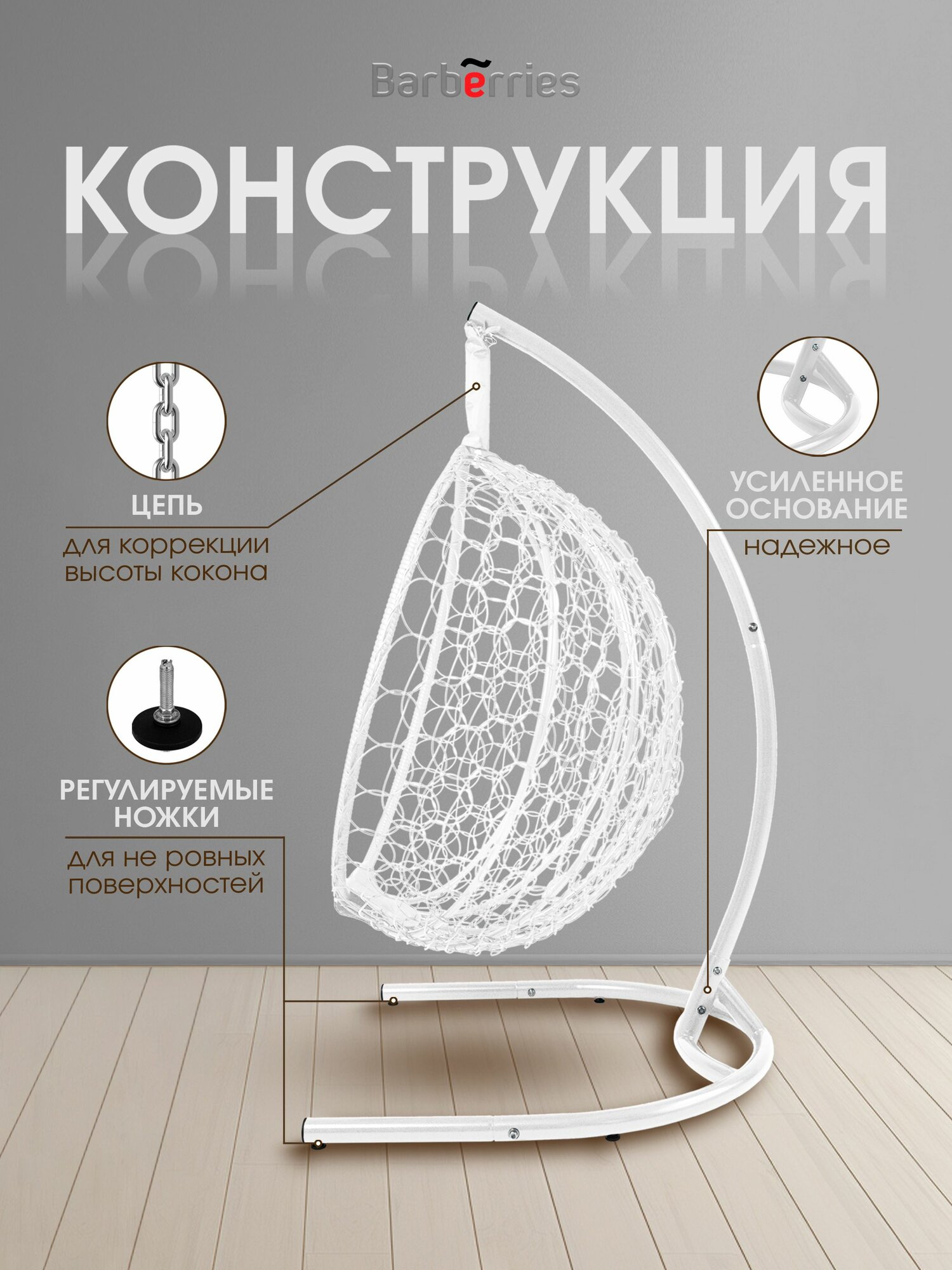 Подвесное кресло кокон Smile Ажур 175х105х63см. Усиленная стойка до 200 кг Белый, подушка трапеция Красный.