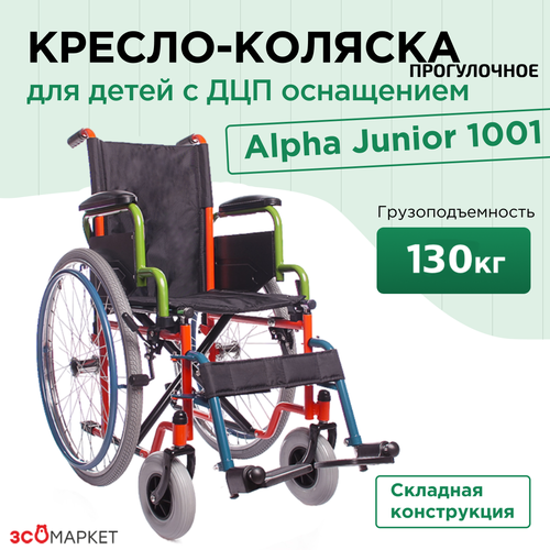 Купить Кресло-коляска для детей-инвалидов и детей с заболеванием ДЦП Alpha Junior 1001 механическая, прогулочная с доставкой по всей России.